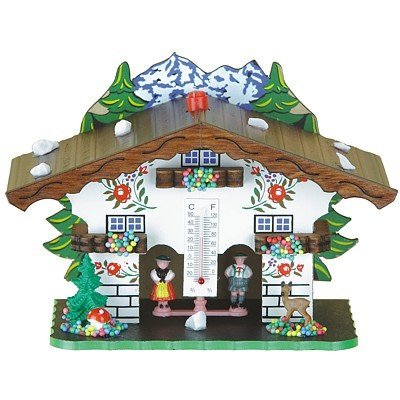 -. Feature : Colour: Coloured Height: 13 cm/5.1 inch Width: 13 cm/5.1 inch Depth: 8 cm/3.1 inch The weather house is made of wood. The height of the figures is 4,5cm/1.8inch. This is how a weather house works: There is a gut string inside, which reacts to all changes in the air humidity. Depending on whether the air is dry or humid, the gut string changes its position and twists more or less, so that the female turns outside when it is dry and the male, when it is humid.