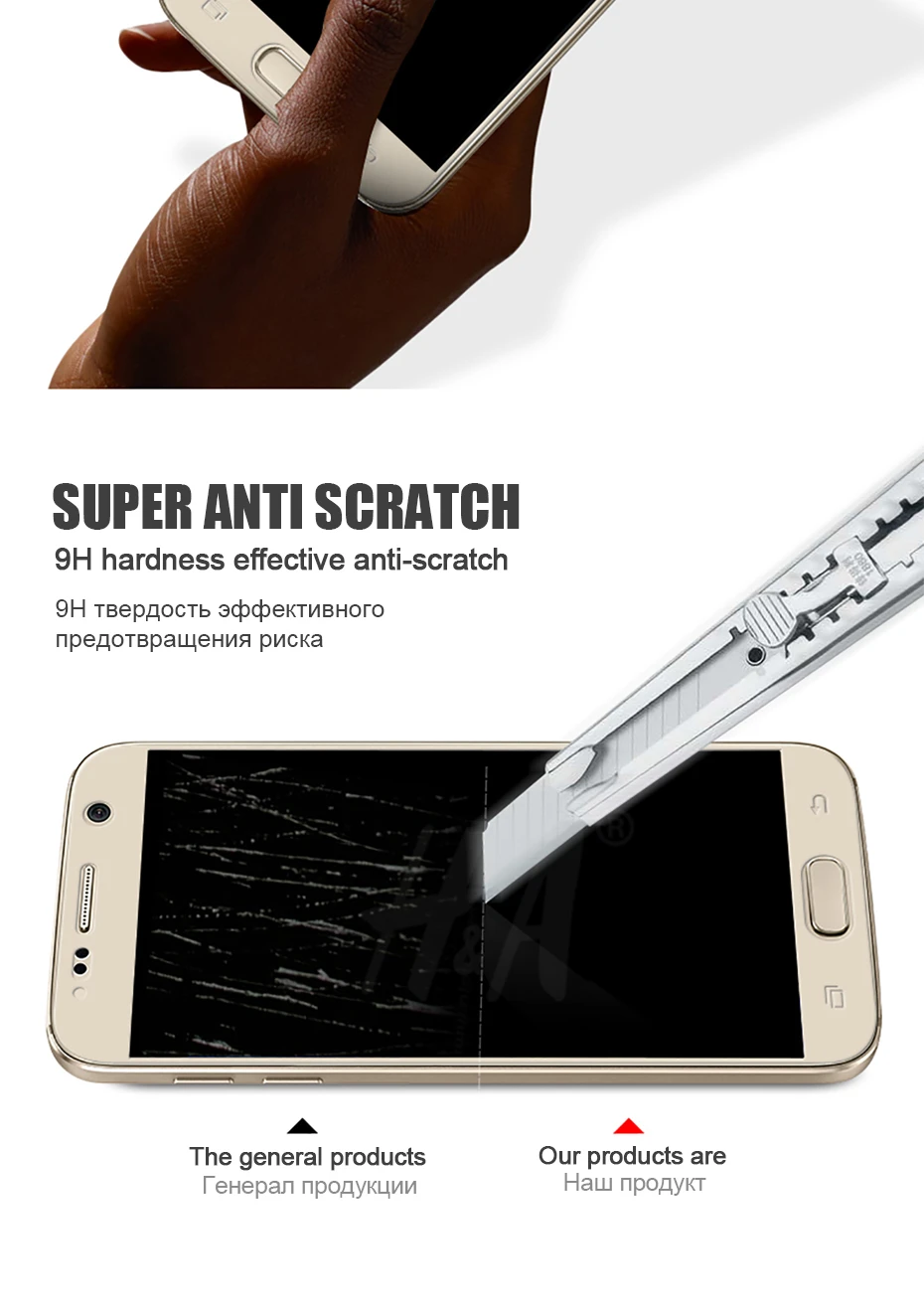 Step 3 Tear lower protective film, lightly attached alignment phone mirror, down, left, right border.