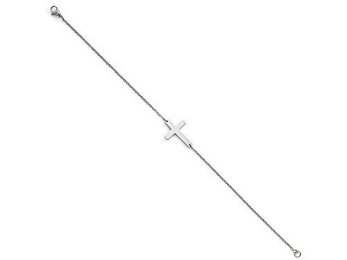 -. Title : Chisel Stainless Steel Polished Sideways Cross Anklet