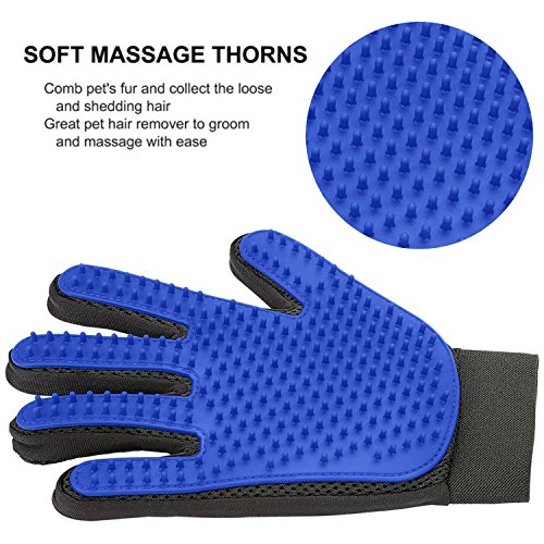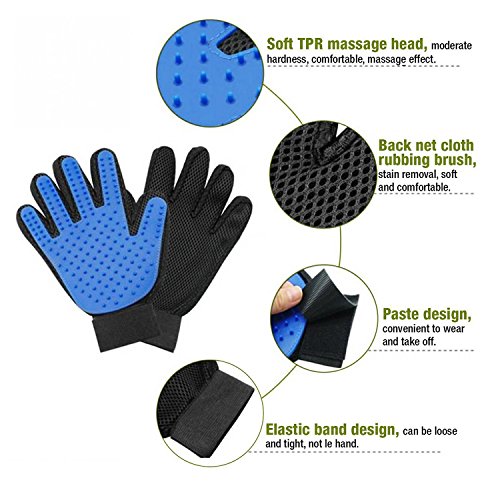Pattern Name:Right Hand (Blue) - Upgrade Version Slip on the PET NINJA pet grooming glove and keep your pet's coat looking clean and healthy while reducing the hair scattered about the house! Keeping your dog's or cat's coat brushed regularly is important for their overall health, as well as yours-and the?PET NINJA Pet Grooming and Deshedding Gloves?make it easier and more efficient than ever before! Brush Away the Mess This flexible, slip-on grooming gloves allow you to brush away dirt, grime, dander and loose hair from cats and dogs of all shapes and sizes. More importantly, it helps stimulate the healthy oils on their skin which can improve the softness and radiance of their coat. A Healthier Home Gentle on the skin thanks to soft rubber tips, our groomer's glove not only helps reduce the amount of hair left behind on furniture, clothes or in the car; it can help reduce allergens in the air for cleaner, healthier breathing. Product Details: Multi-function Deshedding Glove (Upgrade Version) With Enhanced 255 Soft Rubber Tips Adjustable Wrist Strap (One Size Fits All) Lightweight and Breathable Gentle Hair Remover Machine Washable (Easy to Clean) Safe for Cats, Dogs and Other Pets 0 |