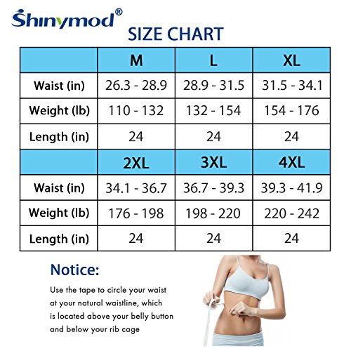 Find your perfect size ①M Waist: 26.3" - 28.9" Weight: 110lbs - 132lbs ②L Waist: 28.9" - 31.5" Weight: 132lbs - 154lbs ③XL Waist: 31.5" - 34.1" Weight: 154lbs - 176lbs ④2XL Waist: 34.1" - 36.7" Weight: 176lbs - 198lbs ⑤3XL Waist: 36.7" - 39.3" Weight: 198lbs - 220lbs ⑥4XL Waist: 39.3" - 241.9" Weight: 220lbs - 242lbs