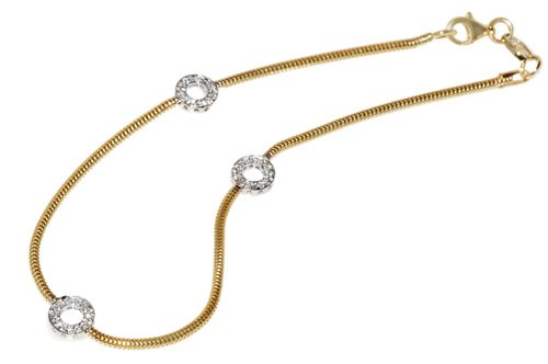 -. Title : 14K Yellow Gold 10" Snake Anklet Bracelet, Set with Open Circle Stations, Enhanced with Pave Set Diamonds.