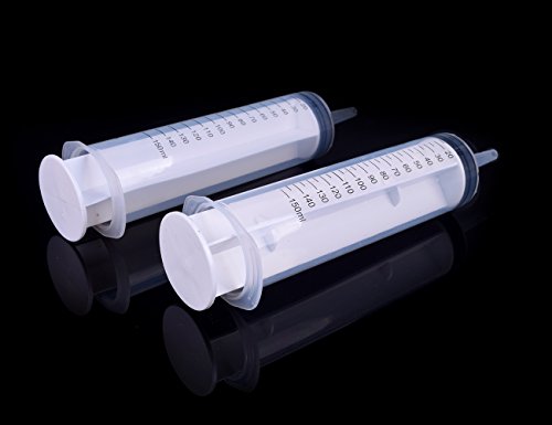 HUAHA 2 Pcs 150ML Large Plastic Reusable Measuring Syringe with 100cm(40") Tubing, 4 Pcs Caps, 10 Pcs Dispenser Needles