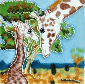 Giraffe and Baby Ceramic Wall Art Decorative Tile 4x4