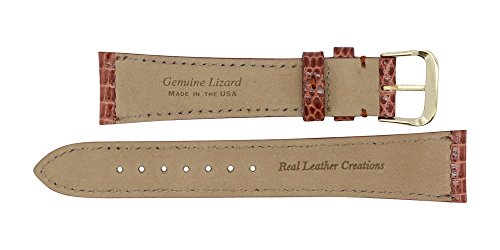 -. Feature : American Made: When you buy a replacement watch band directly from Real Leather Creations, you are buying directly from the American manufacturer. / VERSATILE: You will receive both a gold and a silver buckle that can be interchanged. / STYLE & EXCEPTIONAL QUALITY: These Regular length bands are 3.0mm thick and 7.5"/190mm in length not including the buckle or watch. The fine stitching, hand-painting and durable Genuine Lizard enhance the attractiveness and durability to ensure your timepiece looks good longer. / COMFORT: The back is lined with smooth, supple nubuck leather to maximize comfort. / COMPATIBILITY: This strap will fit almost any watch that has a straight lug with the correct millimeter measurement. It is compatible with hundreds of watch brands and thousands of watch models. To see a list of some of the brands this strap is compatible with, view the Product Description section. It comes in the following standard-length sizes: 16mm, 17mm, 18mm, 19mm, 20mm, 22mm and 24mm.