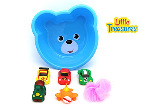 -. Title : Little Treasures Super Fun Bath Toys - Toddler Sized Bathtub Bowl with 5 Squirting bath Toy Vehicles