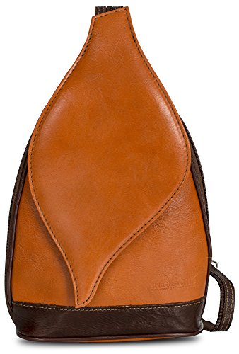 LiaTalia Vera Pelle Made In Italy Kim byLiaTalia Womens Mens Adult Small Little Real Italian Leather Backpack Duffle Rucksack Shoulder Bag - (Orange - Brown)