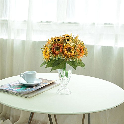 Artificial sunflower bouquet is a perfect way to greet your guests with love and warmth. A wonderful addition to your dining table centerpieces arrangements