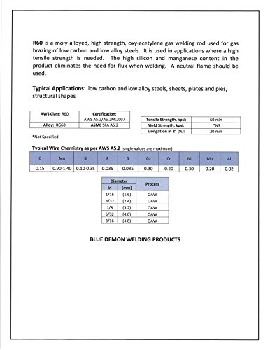 Blue Demon RG60 X 1/16 X 36" X 1LB Tube High Strength Oxy-Acetylene Gas Welding Rod