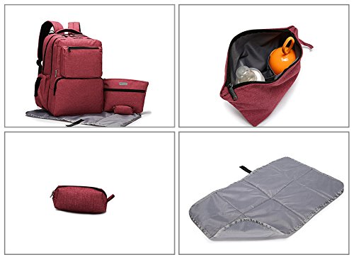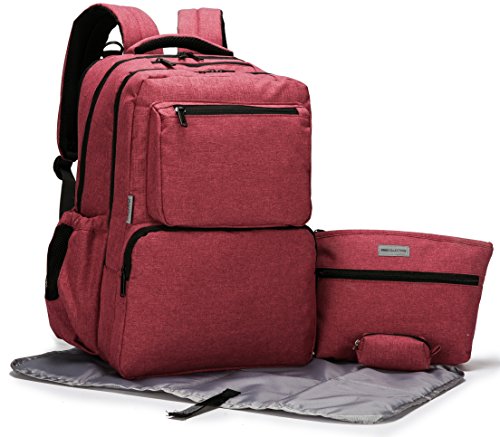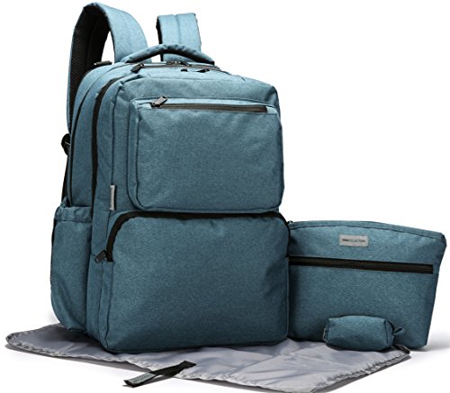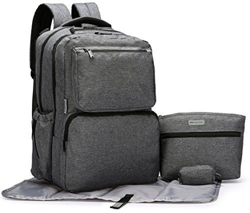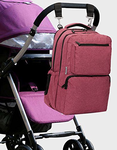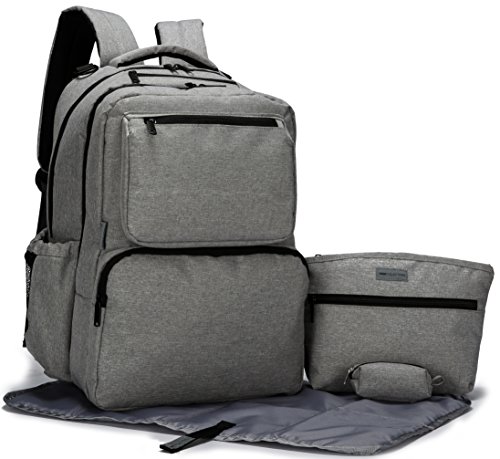 This SoHo Diaper Back Pack is a 5 pieces ultimate set that a busy mom want: Inspired and designed by our Famous French Designer Kenneth Leroy. This streamlined backpack offers detail construction and true hands-free convenience & functionality. Perfect for Both Mom and Dad on the go. This Ultimate Organizer System Back Pack come with 2 Main compartment, Each compartment come with multiple pockets ,Reliable zip-top closure with Adjustable padded straps , This bag have total of 16 pockets interior & exterior pockets for your organization. This bag can holds most 15" laptops.This can also Hangs neatly on a baby stroller with the included pairs of stroller straps. Also, it include a Personal purse with zip closure for mom on the go to carry all her personal items. In Addition, It also come with our nice cushioned changing pad, our Compact Diaper bag Dispenser with 30 counts of refillable plastic bags which can conveniently clips to the main diaper bag for busy mom.Feature