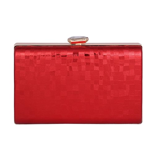 Product Description Women?s medium metal frame hard case square clutch covered with faux leather. Mosaic style pattern, looks mysterious. Large rhinestone studded with on top, easy to open with snap clasp. Enough compartment to your lipstick, cosmetic, cards, cash, money, keys and iphone 7?iphone 7plus is ok. Suit for night out like wedding, dating, party, dinner, cocktail. With a removable chains inside, you can hung it on your shoulder or cross-body used. Interior a metal handle, it?s so handle. Long chain length:120cm(47.24inch). Handle height: 8.3cm(3.26inches). Bag dimension: 17*4.5* 11.3cm (6.69*1.77*4.44inch). 0
