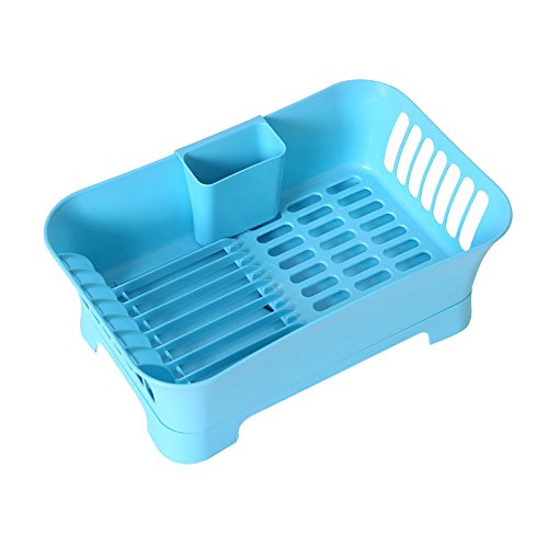 [Blue] Baby Dish Drainer Rack and Tray Easy-To-Use Light-Weight Bright Color Disassemble for Easy Cleaning