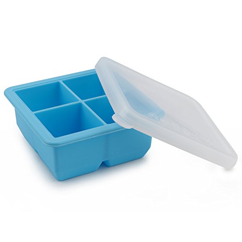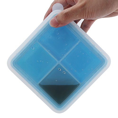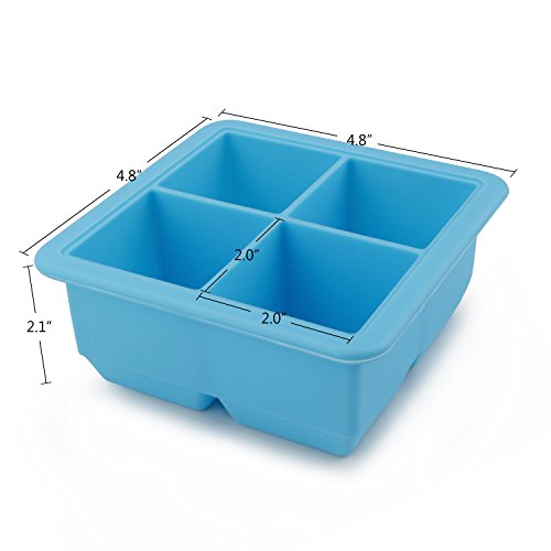 Beasea 4 Grids Square Large Silicone Mold Ice Cube Tray For Chilling Cocktail Whisky Yogurts Milks Homemade Baby Food Jelly Pudding, Square Making Molds Tools For Handmade Soap With Cover Color Blue