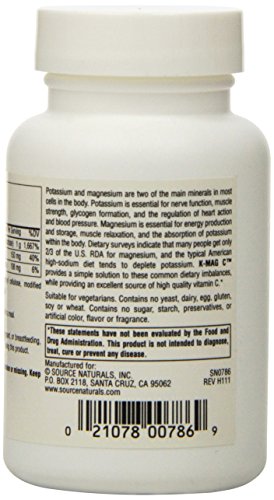 ReleaseDate : 2015-06-22 Studio : Source Naturals Publisher : Source Naturals Binding : Health and Beauty Product Description Potassium is essential for nerve function, muscle strength, glycogen formation, and the regulation of heart action and blood pressure;Magnesium is essential for energy production and storage, muscle relaxation, and the absorption of potassium within the body;Dietary surveys indicate that many people get only 2/3 of the U.S. RDA for magnesium, and the typical American high-sodium diet tends to deplete potassium 0