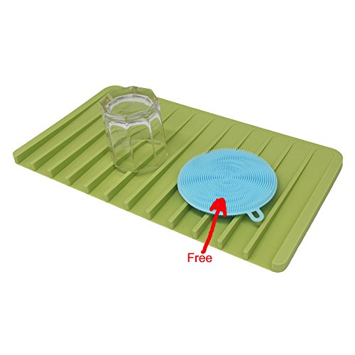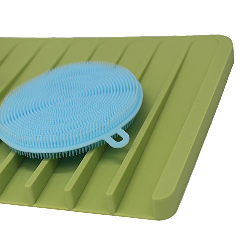 ANILAFORYOU Food-grade Self Draining Silicone Drying Mat Dishwashing Dish Brush Sponge Towel Scrubber For Kitchen (Green+One Dish Brush)
