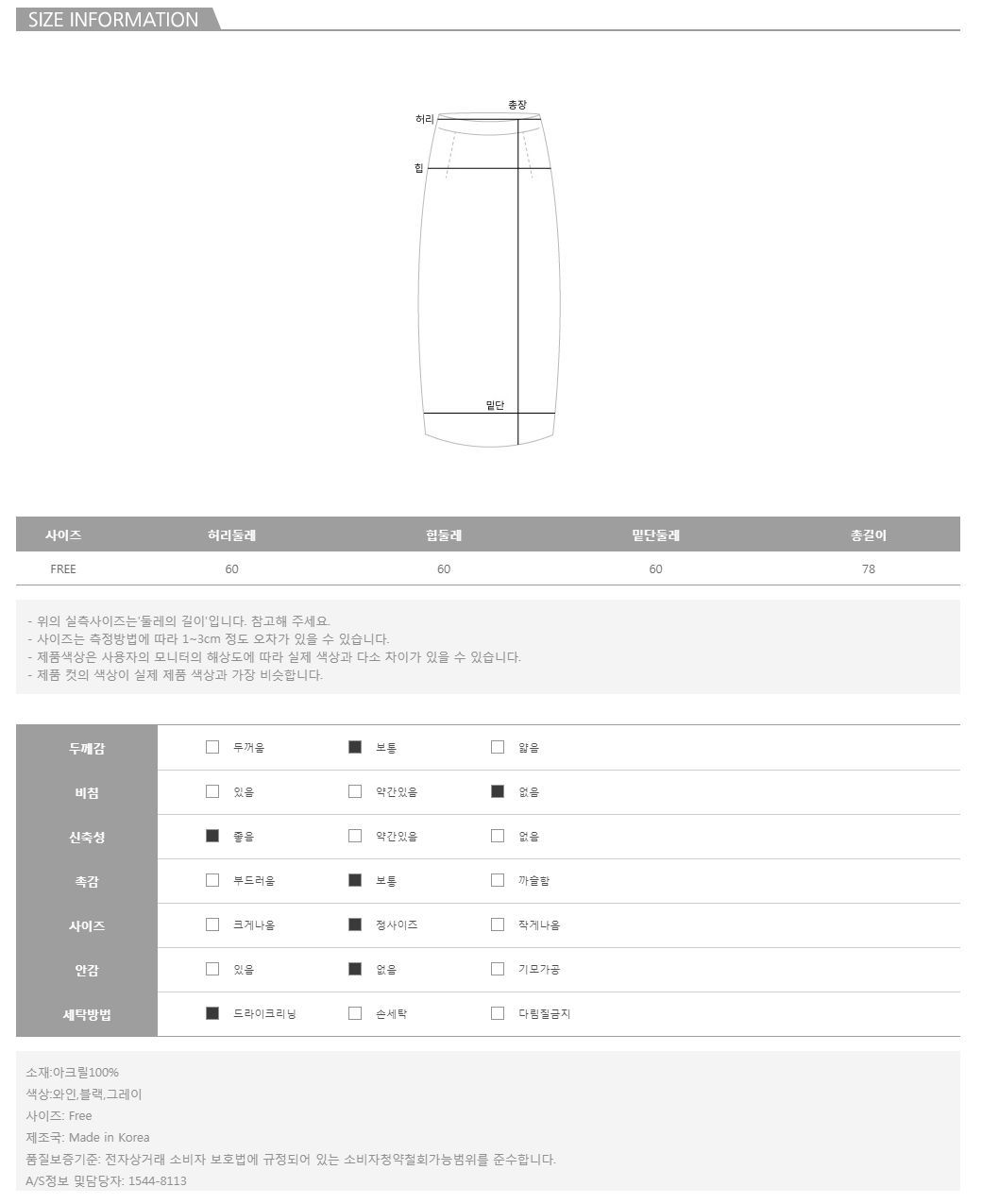 아크릴 소재의 골지 니트 스커트로 소프트하게 감싸주어 한결 부드러움은 물론, 원단 특유의 쫀쫀한 텐션감으로 라인을 매력적으로 그려주면서도 사이즈에 구애 없이 편안하게 만나보시기에도 좋아 만족도는 UP UP~ 또한, 허리 밴딩으로 들뜸 없이 허리 라인을 잘록하게 잡아주는 효과를 지니고 있으며 백 트임으로 다소 롱한 기장임에도 불구하고 우수한 활동성마저 챙겨주는 섬세한 포인트까지 놓치지 않았으니 IT ITEM! F/W를 겨냥한 차분한 컬러감으로 하나쯤 소장하시기를 추천드릴게요:)