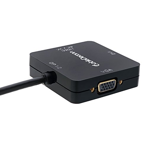 Studio : CableDeconn Publisher : CableDeconn Binding : Electronics Product Description Square Gold-Plated Thunderbolt Mini Displayport 1.2 Version to HDMI (Max 4Kx2K resolution) /VGA (support Eyefinity function-New) /DVI (Max 4K*2K resolution-New)/TV HDTV Video Cable Converter Specification: Output Video: HDMI/DVI/VGA Input: Mini Display Port Male 20pin,Not compatible with Thunderbolt 3 (USB-C) ports Output: HDMI Female 19pin DVI Female (24 1) VGA Female 15Pin Supports max resolution for HDMI port: 4K x 2K Mini DP Port support DP v1.2, which is for 1.62 Gbps, 2.7 Gbps, 5.4 Gbps link rates HDMI Port support v1.4, and the max resolution of 4Kx2K, 1080p, 720p, and HDMI Audio DVI Port support max resolution of 4K*2K (This is one of the defference between our products and others.Both the HDMI and DVI ports support 4K*2K resolution. Other products only the HDMI port support 4K*2K) and the resolution of 1080p, 720p, . VGA Port support max resolution of 1920x1200, and 1920x1080, 1024x768,VGA port support Eyefinity function,this is the second defference between our products and others Note: - Can only convert signal from Mini DisplayPort to HDMI/DVI/VGA. This is not a bi-directional adapter - It does not support more than one output simultaneously - No audio output from VGA and DVI. Macs made before 2010 do not output audio over Mini DisplayPort - Please make sure the movie is 4K x 2K and make sure TV or Display support 4K x 2K resolution, then you can get the 4K x 2K image, or you only get standard image(not 4K result) Compatibility (Incomplete List) - Apple MacBook Pro, MacBook Air, iMac - Microsoft Surface Pro/Pro 2/Pro 3 for Windows 8 Pro - Lenovo ThinkPad X1 Carbon Package Content: 1*CableDeconn Square Gold-Plated Thunderbolt Mini Displayport 1.2 Version to HDMI (4Kx2K)/VGA/DVI (4Kx2K)/TV HDTV Video Cable Converter Warranty: 45 days money-back and 18-month, worry-free Guarantee! 0
