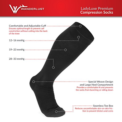 - LADYLUXE 100% SATISFACTION GUARANTEE: Your search for the perfect compression sock is over! We promise these are better than any other women compression garments, tights, pantyhose, leggings, pants, sleeves, and hose you've ever worn! If you don't immediately fall in love with them, we'll gladly refund your money or send you another pair for free!