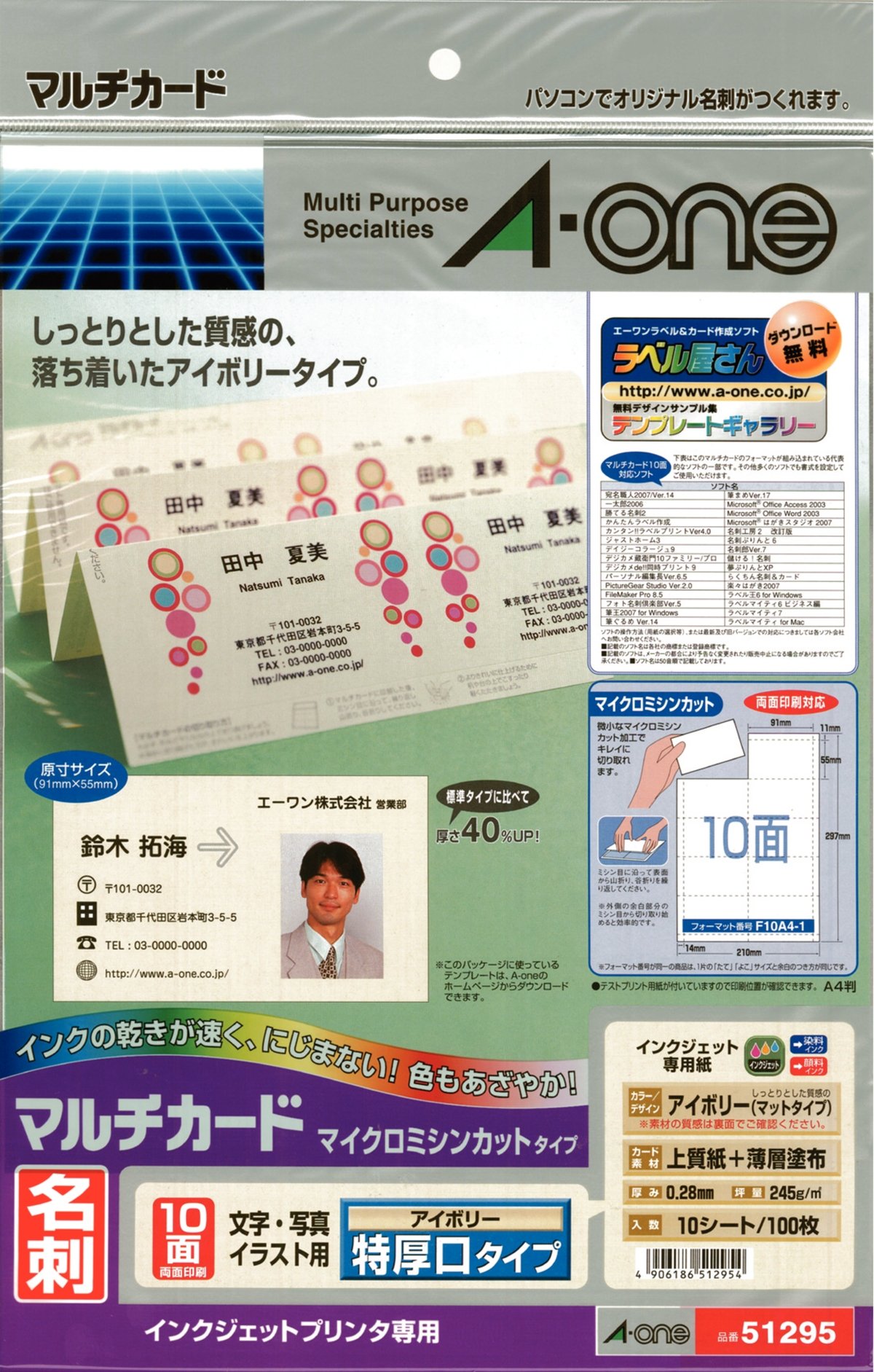 -One (A-one) multi-card inkjet printer special paper ivory TokuAtsu opening type A4 size 10 sided business card size 10 sheets (100 sheets) 51 295 (japan import)