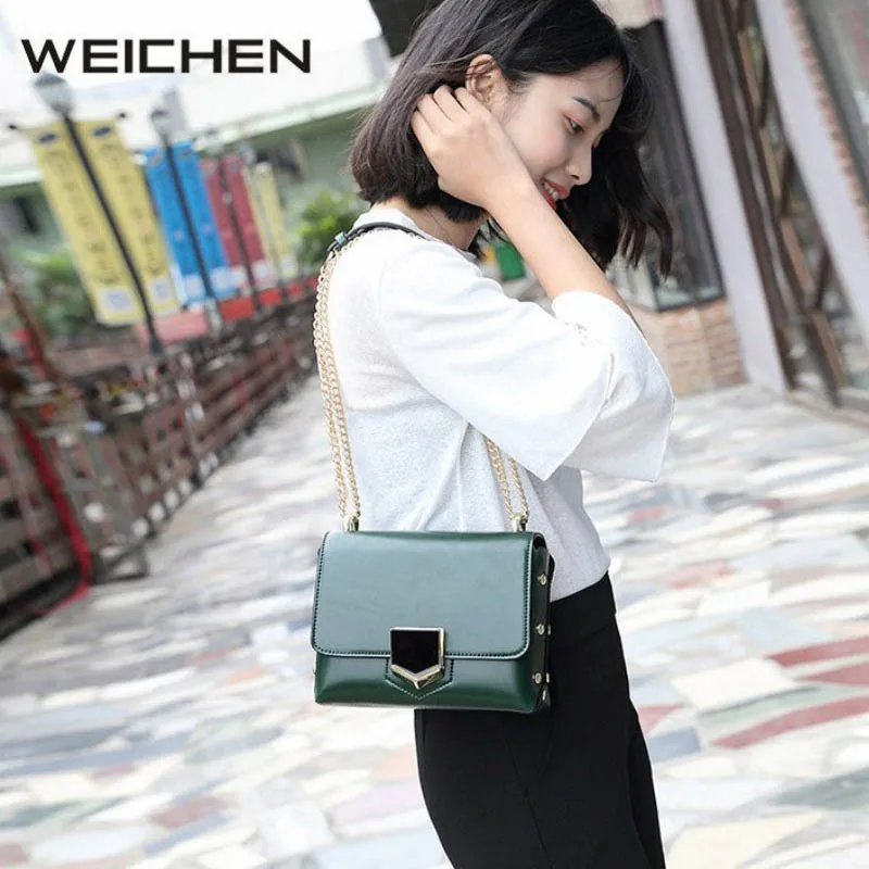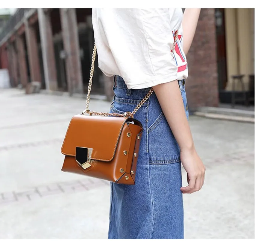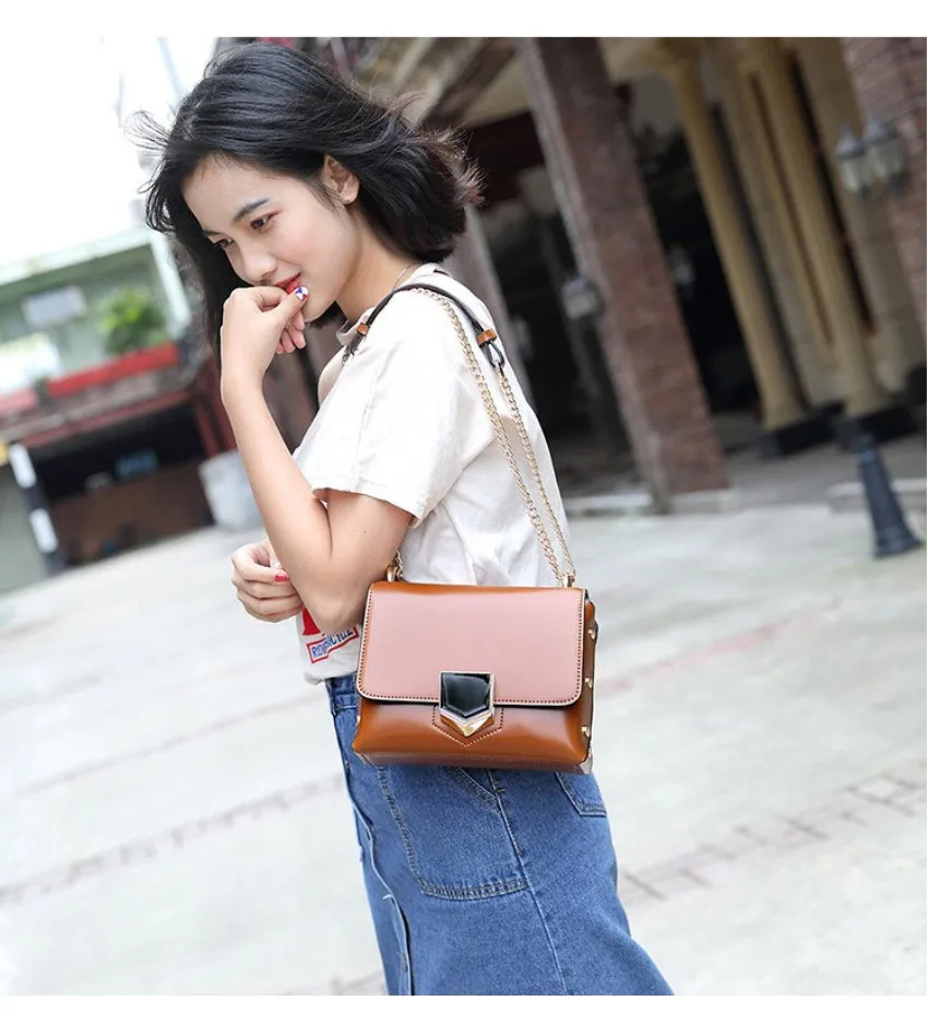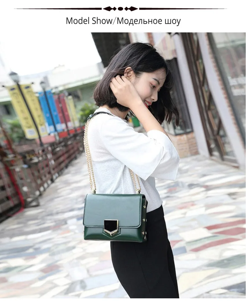 Crossbody Bags for Women 2017 :Classic Black Rivet Chain Women Messenger Bags