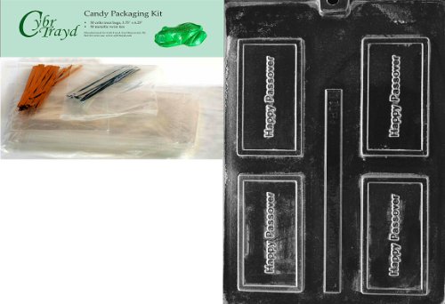 Cybrtrayd "Happy Passover" Business Card Chocolate Candy Mold with Packaging Bundle of 50 Cello Bags, 25 Gold/25 Silver Twist Ties and Chocolate Molding Instructions