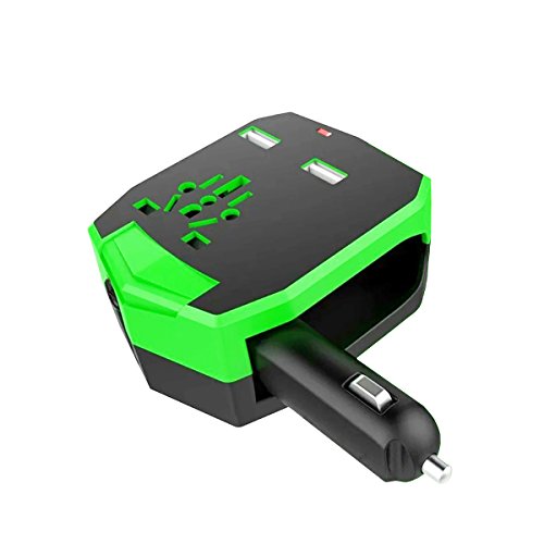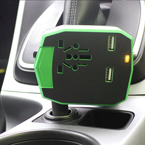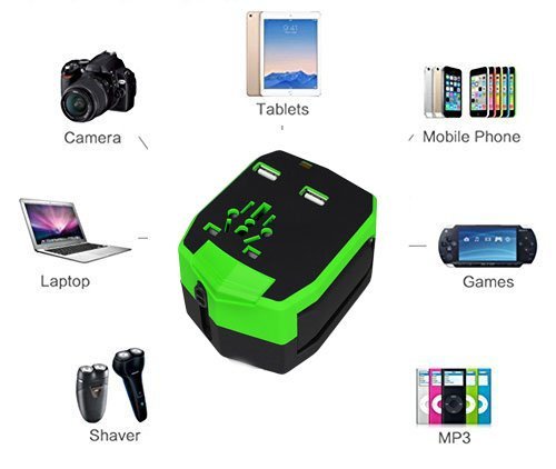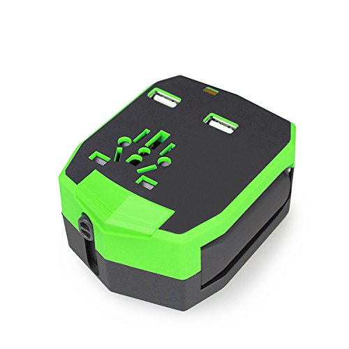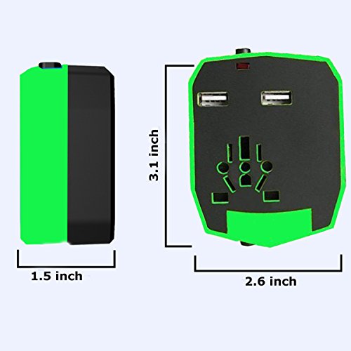 Worldwide Travel Power Adapter KINDEN International Universal Plug (Europe/UK/US/Australia/Asia) Dual USB Wall Charger Car Charger AC Socket (Green)