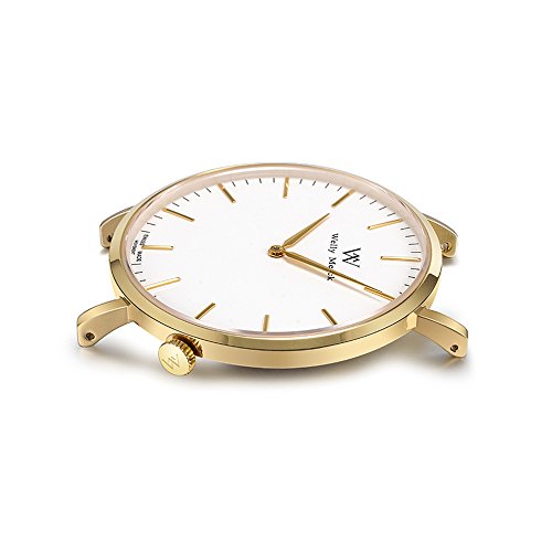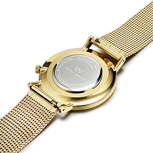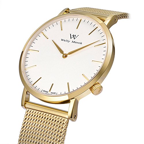 -. Title : Welly Merck Men's Luxury Watch Minimalistic Design Quartz Movement Sapphire Crystal Analog Wrist Watch with Gold Stainless Steel 20mm Width Mesh Interchangeable Strap, 98ft 30M 3ATM Water Resistant