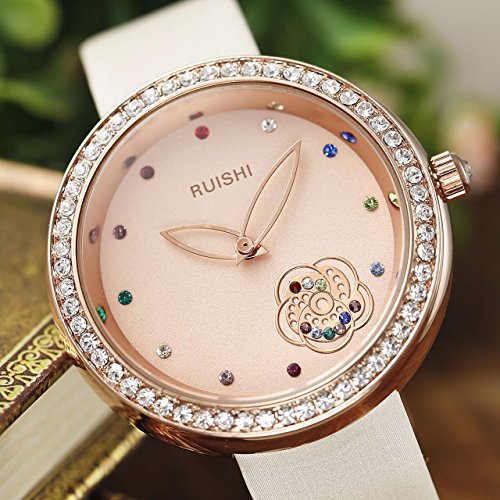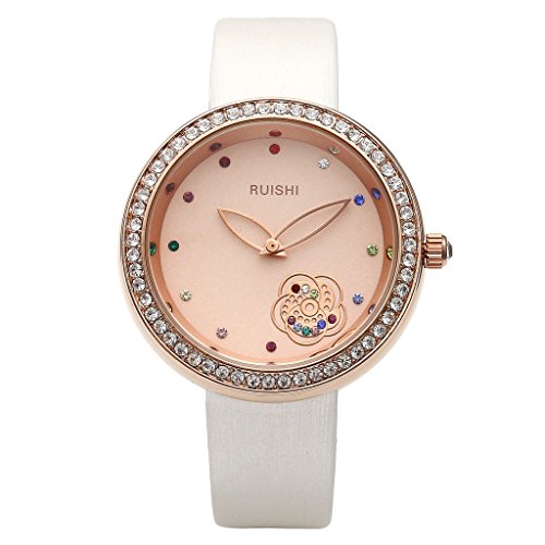 -. Title : JSDDE Rhinestone Flower Dial Genuine Leather Band Analog Quartz Wrist Watch For Womens