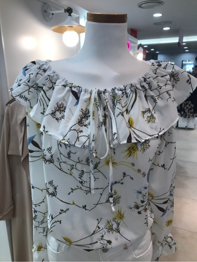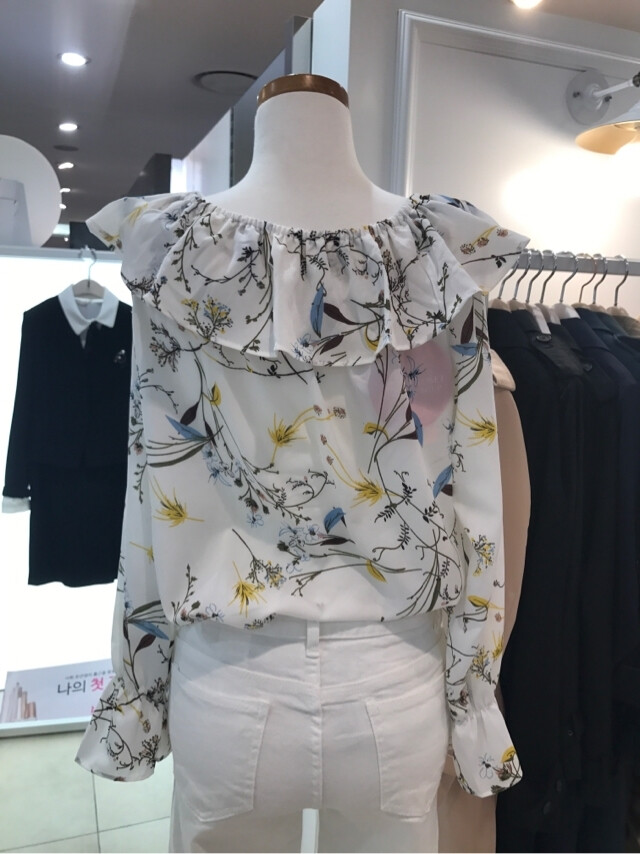 오픈 숄더 형으로 여름에도 어깨라인까지 내려오게 입을수 있는 블라우스입니다