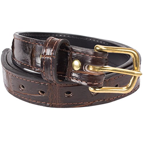 Genuine Handmade Florida Alligator Belt This belt is handmade in the Yoder Leather Company workshop in Northeast Indiana. Features Include: Genuine Florida Alligator Leather Glazed Leather Finish not dull 1.25" Wide to fit nearly all pant loops Dual Layered to make this belt extra thick Perfect for CCW, Gun Holster Belt, or Tool Carrier 7 Holes to allow for weight changes Rounded edge buckle to minimize groove marks from use Every alligator hide is unique. The scale pattern of the belt you receive will most likely vary from that of the picture. Belt size is calculated as waist size 2. 0 |
