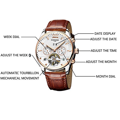 -. Title : KINYUED J010 Men’s Multifunctional Automatic Mechanics Wrist Watch with Italy Genuine Leather Band