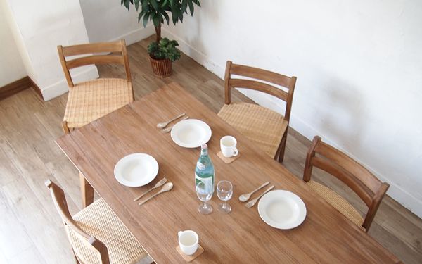 ●チーク無垢木を贅沢に使用した、木のぬくもりが感じられるダイニングテーブル。