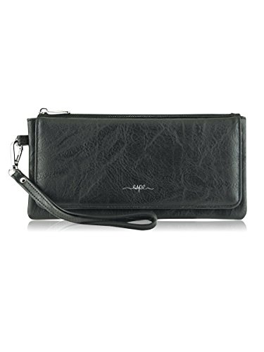 Product DescriptionRFID protected Detachable wrist strap Size: 8.5"w x 4"h x 1"d Wristlet Drop: 6.5" Material: Polyurethane0