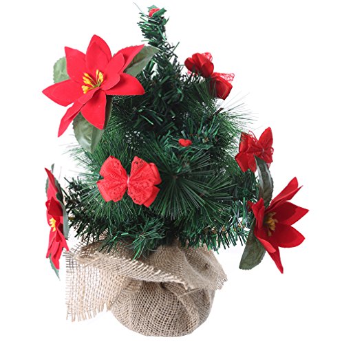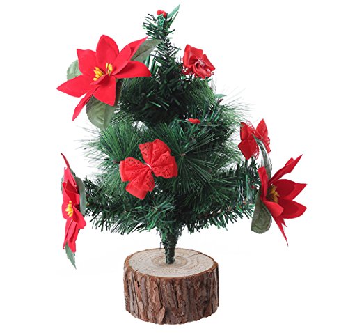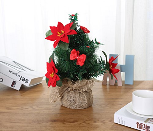 Miracliy Mini Christmas Tree with Wood Burlap Base Tabletop Christmas Pine Tree 13.5 Inch High