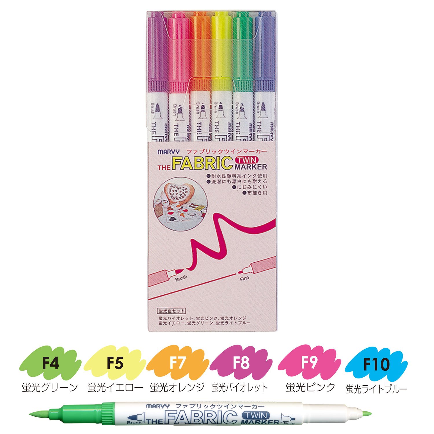 6 color fluorescent color fabric mer B Twin marker (japan import)