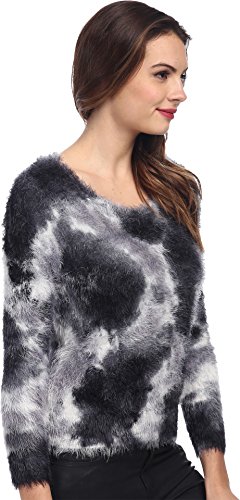 Fabricated in an eyelash yarn in a tie-dye pattern all throughout. Round neckline. Long sleeve design. Straight hemline. 100% nylon. Hand wash cold, flat dry. Imported.