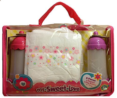 Studio : My Sweet Love Publisher : My Sweet Love Binding : Toy Product Description Ideal For Baby Pretend Play;This Fun Kit Can Be Used With Any Baby Doll.;Includes: 2 Diapers, 2 Play Bottles, 1 Bag;Dimensions: 8.74L x 1.73W x 5.24H;For Ages 2 Years Old and Up 0