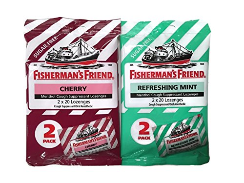 Studio : Fisherman's Friend Publisher : Fisherman's Friend Binding : Health and Beauty Product Description Set of two new sealed packages: (1) Cherry (1) Refreshing Mint. Each package contains 2 packs of 20 lozenges. Fisherman's Friend is renowned around the world. Discover its power in fighting coughs, soothing sore throats, and helping nasal passages feel cool and clearer. No Artificial Flavors or Ingredients. 0