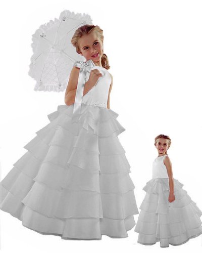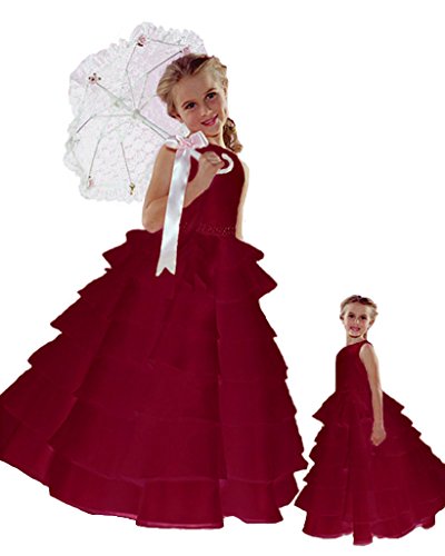 Sara Too Satin sleeveless tank with beaded waist detail, multi flounce organza tiered skirt. This Beautiful dress is perfect for Weddings, Flower girl, Church, Birthday Party, and dress up party. This lovely dress was designed by brand name boutique quality designer Sara Lene. It comes with attached petticoat crinoline netting for additional fullness. All over Organza Layers dress, fully lined. This dress has zipper back and adjustable sashFeature