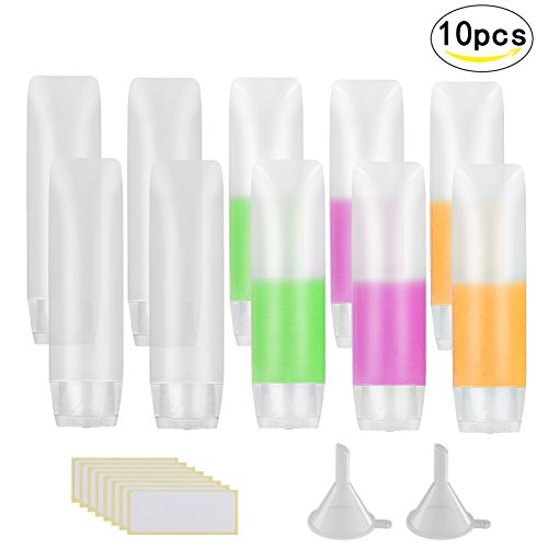 - Packed included 10 pcs 30ml(1oz) clear empty travel size bottles with flip-cap tops,2 pcs mini plastic funnels and a sheet sticker label.