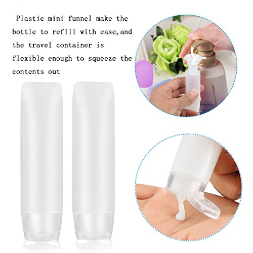 - Travel squeeze bottle with plastic mini funnel to refill with ease,reduce spills and waste and you can set the label at your demand to help you identify the content.