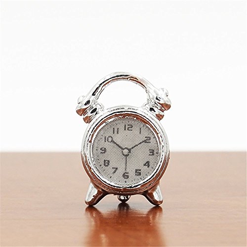 -. Title : Odoria 1:12 Miniature Silver Alarm Clock Dollhouse Decoration Accessories