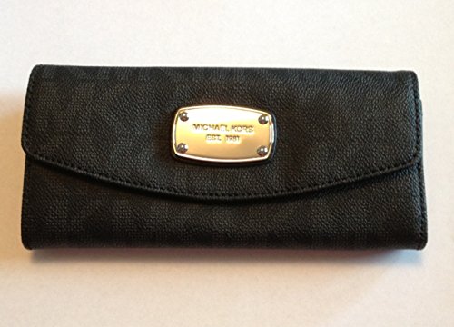 -. Brand : Michael Kors -. Color : Black/Charcoal Grey -. Department : womens -. EAN : 0889154484634 -. Feature : Made of Black/Charcoal Grey PVC with silver-tone hardware / Measures approximately 7.75" W x 3.5" H x 1.5" D / Exterior features Snap front closure, polished silver signature name-plate and back side slip pocket / Interior features 2 full length slip pockets, 1 zip top coin compartment, 2 bill/currency full length slip compartments and 6 card slots / Imported -. Model : 35F5SJSE7B -. ProductGroup : Shoes -. ProductTypeName : HANDBAG -. Title : Michael Kors Signature Print Jet Set Slim Flap Wallet- Black PVC -. UPC : 889154484634 Stylish and convenient for all your wallet necessities, Michael Kors Jet Set Slim Flap Wallet in black PVC Signature mongram pindot print will co-ordinate with any black or charcoal grey bag! The exterior features a snap front closure, silver signature nameplate and a backside slip pocket. The interior features 2 slip pockets, 1 zip top long coin compartment, 2 bill/currency compartments, 6 card slots and black signature jacquard fabric lining. Measures approximately 7.75" W x 3.5" H x 1.5" D Imported
