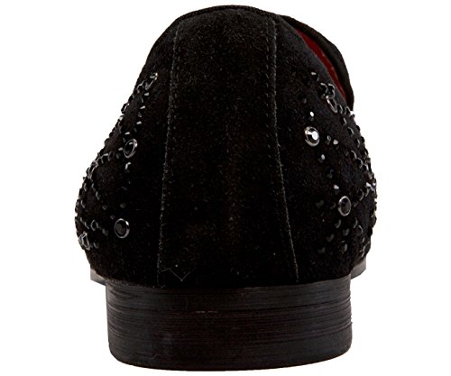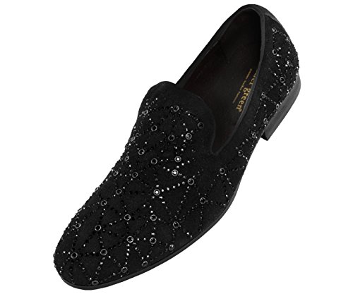 Binding : Apparel Product Description All eyes on you: These tonal black crystal-encrusted genuine suede tuxedo slippers are the ultimate statement-making dress shoe. Whether it's for the holidays, a special occasion such as prom, or simply for a night out, these eye-catching shoes are essential for elevating your entire outfit. This classic smoking slipper silhouette has a black crystals in a web design on the upper, giving this slip-on a designer look. A low block heel and leather lining make these loafers comfortable to wear and easy to slip on. Take your look to the next level and add some major star power to your next night out on the town with these luxurious shoes. 0