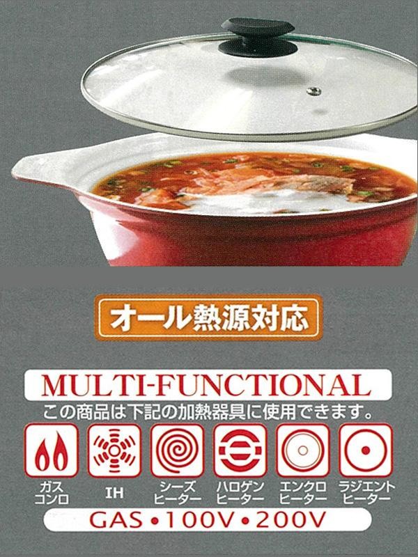 | 耐食性・耐久性に優れたセラミックコートが施されたガラス蓋付卓上鍋です。 |