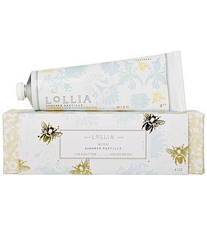 -. Binding : Misc. -. Brand : Lollia -. Feature : A Burst of Italian Bergamot, notes of Cinnamon and Pepper, Rice Flower, Jasmine and Ylang Ylang, sheer Amber Woods and Vanilla Bean. / Shea Butter and Macadamia and Brazil Nut Oils. / Real gold bees float around blue french inspired fular and criss cross pattern. / Outer sleeve wraps over reusable box covered in monochromatic flowers and vines. / 4 ounces -. ProductGroup : Beauty -. ProductTypeName : BEAUTY -. Title : Lollia Sugared Pastille Shea Butter Hand Creme - 4 oz.