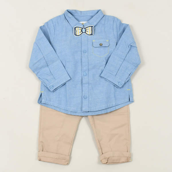 - 보타이가 귀엽게 디자인되어 더욱 사랑스러운 느낌의 셔츠형태 상하복입니다.