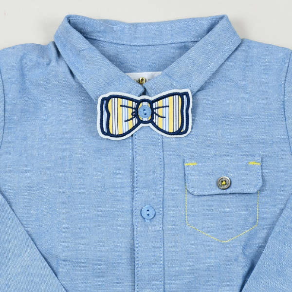 - 노란색 줄무늬 보타이는 탈부착이 가능하도록 디자인되어, 데님셔츠만 캐쥬얼하게 입히셔도 좋습니다.