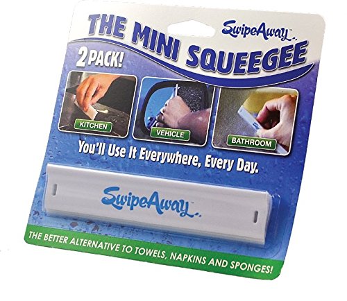 -. Binding : Kitchen -. Brand : SwipeAway Mini Squeegee -. Color : White -. EAN : 0853125004008 -. Feature : Swipe water off kitchen countertops into sinks after doing the dishes / Clear rain droplets and frost from car side-view mirrors / Use in the bathroom to defog mirrors after a shower / Wipe down glass shower doors or hard to clean glass french pane widows / Small squeegee without a handle for easy use and storage -. Label : The Blue Swing LLC -. Manufacturer : The Blue Swing LLC -. Model : SWA -. MPN : SWA -. PackageQuantity : 2 -. PartNumber : SWA -. ProductGroup : Home -. ProductTypeName : HOME -. Publisher : The Blue Swing LLC -. Size : 5.5 -. Studio : The Blue Swing LLC -. Title : SwipeAway, The Mini Squeegee for Kitchens, Bathrooms & Cars - 2 Pack -. UPC : 853125004008