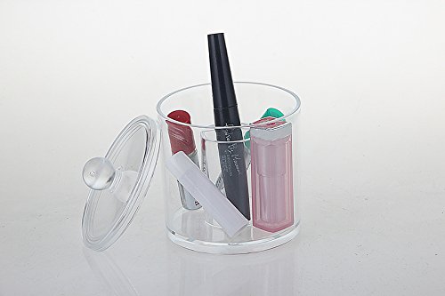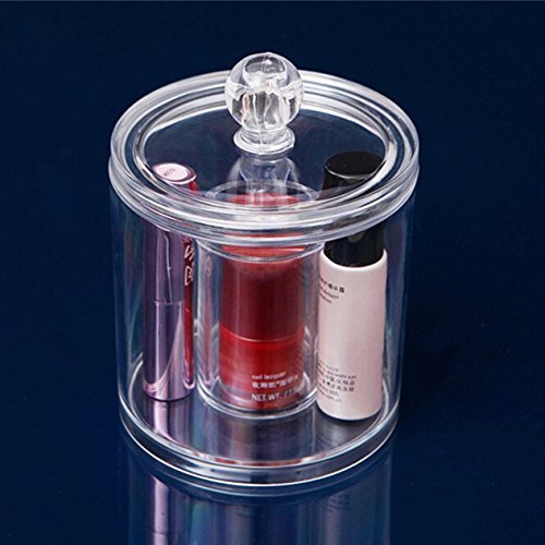 KEEP IT NEAT! Store cotton balls, cotton swabs, makeup pads, and other bathroom accessories in this clear container. This clear acrylic organizer is composed of 3 compartments which allow you to eliminate clutter and save space. Easily store everything from lipsticks and eye shadows to office supplies or household knick knacks such as safety pins and nails. It won't clash with the decor of your home or office and makes a beautiful display.